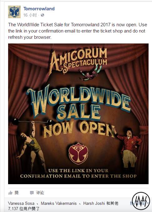 除了疯狂的销售速度以外,尽管很多东西掌握权不在我手上,我不能给大家透露太多,但还是想告诉你一些有用的东西。今年Tomorrowland要搞大事,并且有很多中国电音爱好者会很在意的事。各种十几万人的大型电音节阵容证明了2017年的新趋势,地下电音类型已经步入大众化,Techno/Tech House/Deep House艺人纷纷踏上主舞台(全球人数最多的电音节Tomorrowland 2017阵容)。