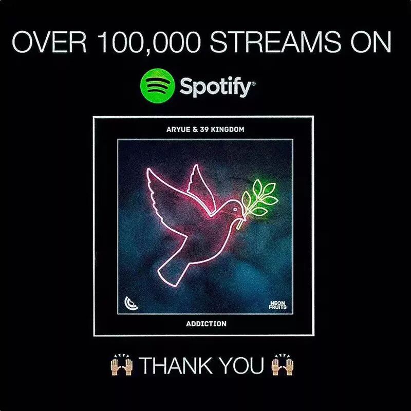不止《GUANGZHOU》。Aryue与39 KINGDOM合作的《ADDICTION》又在Steve Void创立的知名厂牌Strange Fruits发布,同样在音乐流媒体中取得了不错的成绩。更被一系列Future House/Future Bounce艺人所支持。