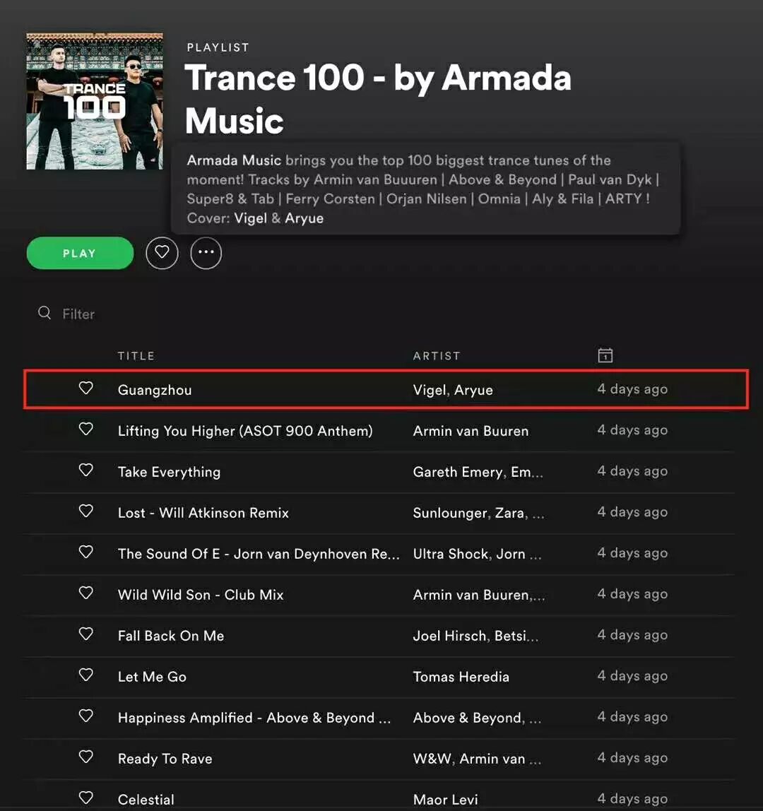 作为由Armada Music子厂牌Armind发布的单曲,这首音乐又被Armada Music列入Top 100 Trance的Spotify歌单中。