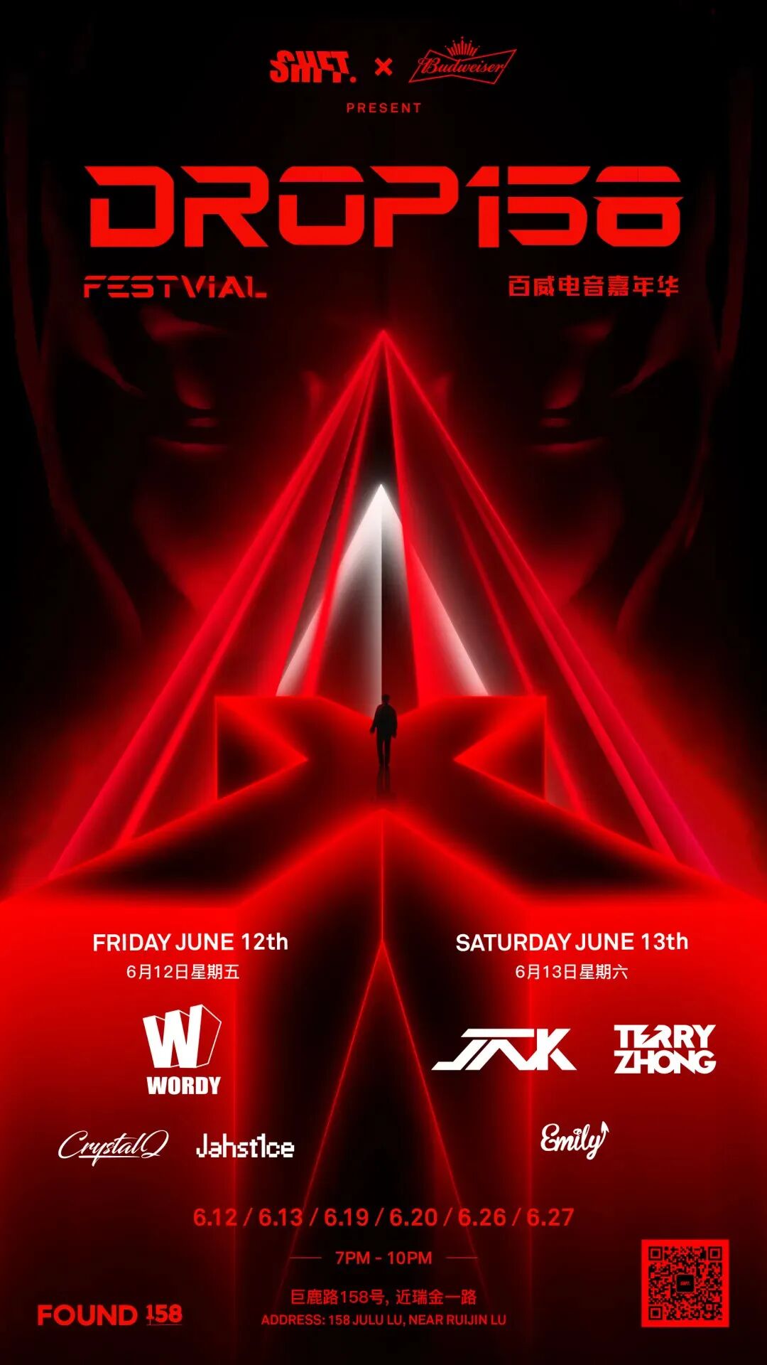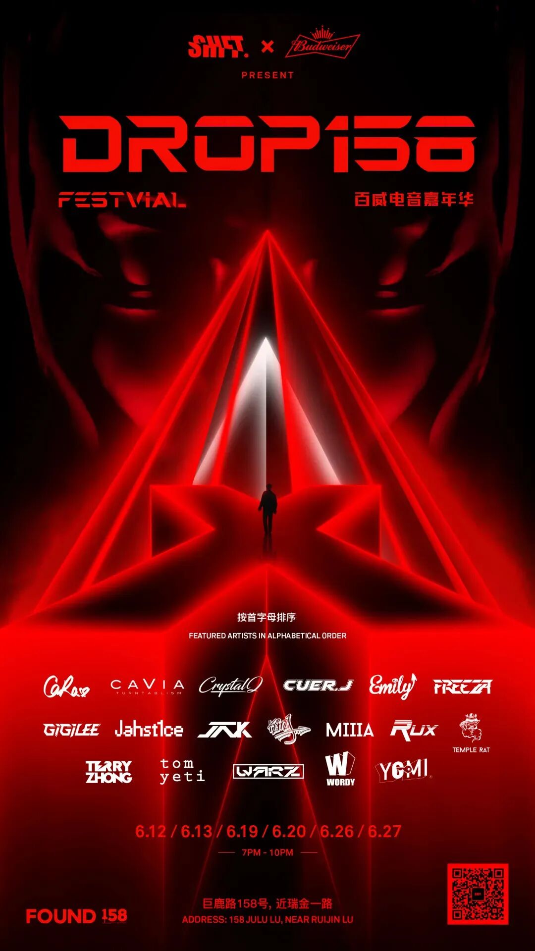 本周五及周六,即6月12日至6月13日,SHFT与百威联合举办的派对将于FOUND 158进行,他们成功预订到了Hip-Hop Music、Bass Music、EDM领域内受人尊敬及活跃在上海等地的中国DJ/制作人们,让更多人才DJ/制作人们看到了“两种硬需”以外的曙光。