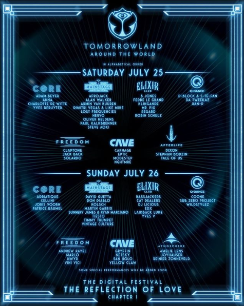 又一方面将Tomorrowland的直播展现得更像一场真实的音乐节的元素还有舞台。是的,即便是直播,今年的Tomorrowland仍将以多个舞台的形式展出,这个就叫专业。两日活动内涉及的舞台共包含:Core、主舞台、ELIXIR Club、Q-Dance、Freedom、CAVE、Afterlife、Atomosphere。