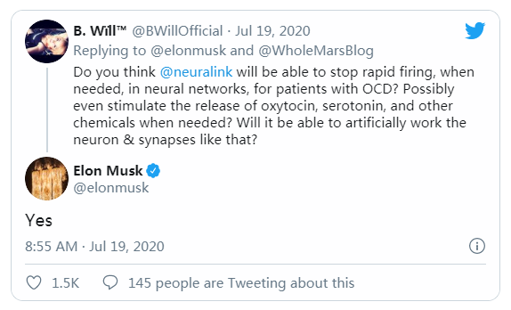 更有意思的是,Neuralink的这款人类大脑芯片的功能具有开辟性,包含但不限于:⑴装有这款芯片的大脑可以直接在大脑内使用音乐流媒体,实时播放音乐;⑵可以治疗抑郁症(老网抑了);⑶可以治疗强迫症;⑷可以治疗焦虑症;⑸可以治疗其它神经系统疾病。