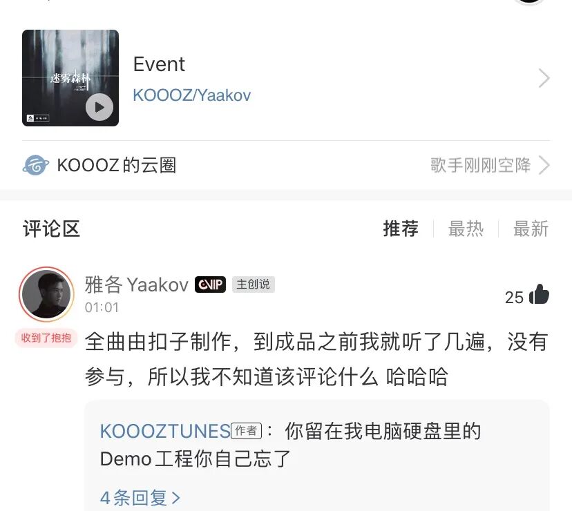 Yaakov开玩笑地自黑道:“这首单曲我没有参与”,但实际上这是一次富含精神文明的多元合作。KOOOZ将Yaakov在KOOOZ硬盘上遗留下的工程,与KOOOZ自己的另一份共同相结合,并且在两人的工程合体后为配器重新编排和重组,重新贴合《迷雾森林》主题。