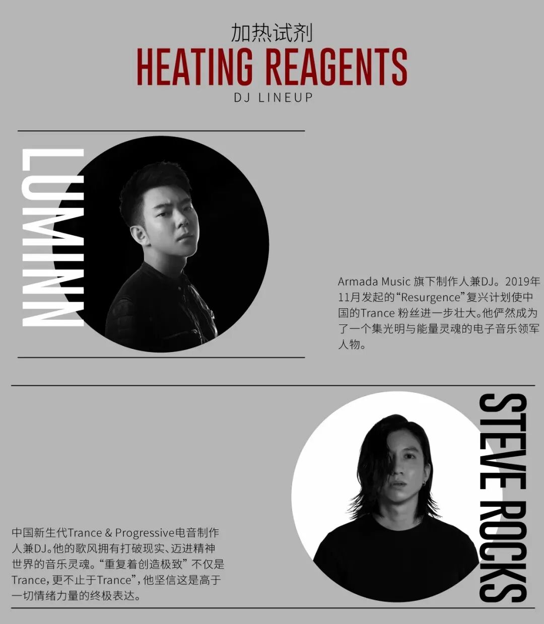Day 1——乙醇 沸点78度——Trance MusicSteve Rocks:从EDM Progressive House转型到Trance以后的Steve Rocks更加活跃于许多知名舞台上,且因这些表演经历和今年发布的几首新作品而处于前所未有的热度高度。LUMINN:与Armada Music建立了独家唱片约和艺人管理约,在Trance Music爱好者的世界中很受欢迎,也有许多国内大型舞台的表演经验,可能是目前最活跃的Trance DJ/制作人之一。Super Y:2018年开始在荷兰接触Trance文化并且将这份热情带回国内,在一些比较大的舞台上为Trance爱好者们留下了印象。王大王:从全球的Trance场景中汲取经验并且带到自己的DJ Set现场。