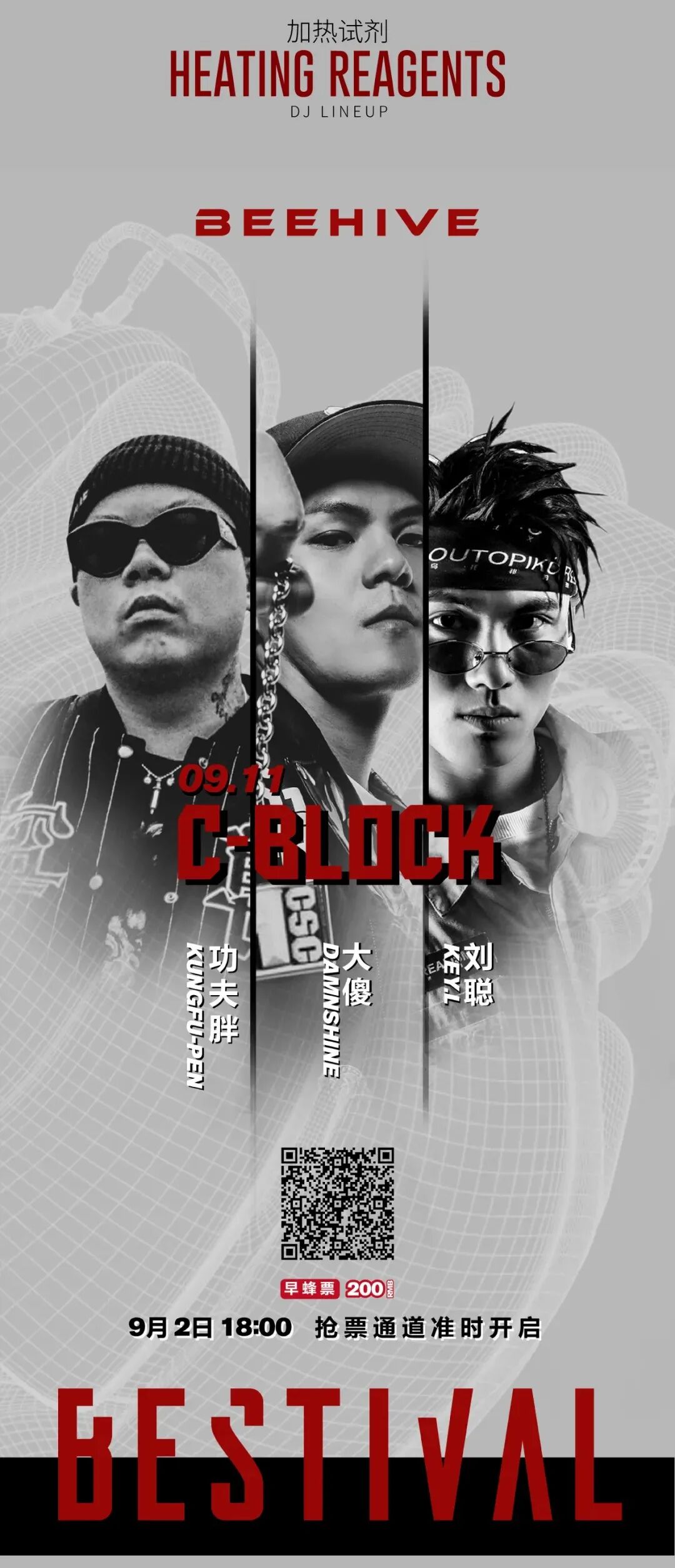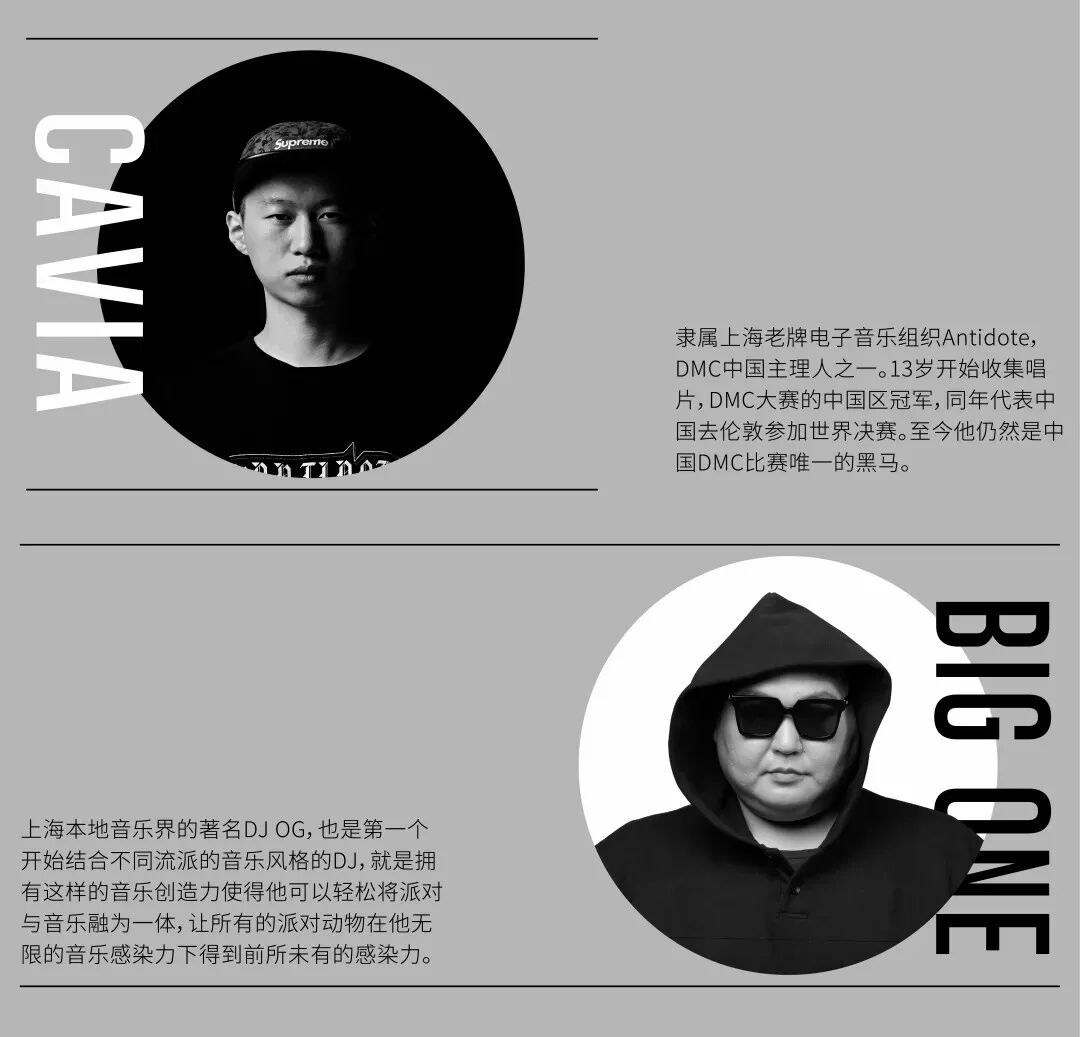 Day 4——乙醚 沸点34.6度——Hip-Hop MusicC-Block:富有流量的说唱三人组,由大傻、刘聪、功夫胖三人组成,多次出现在高曝光率的综艺节目上。Big One:上海老牌DJ,既擅长Hip-Hop也对Open-Format的DJ Set进行长期研究。Cavia:许多优异的DJ比赛成绩让许多人慕名而去他的现场。