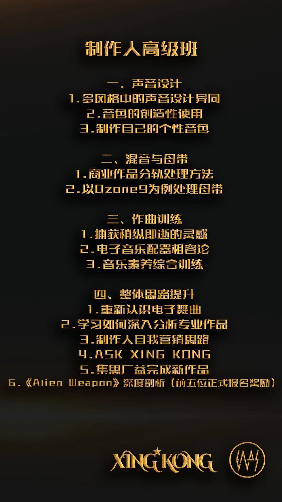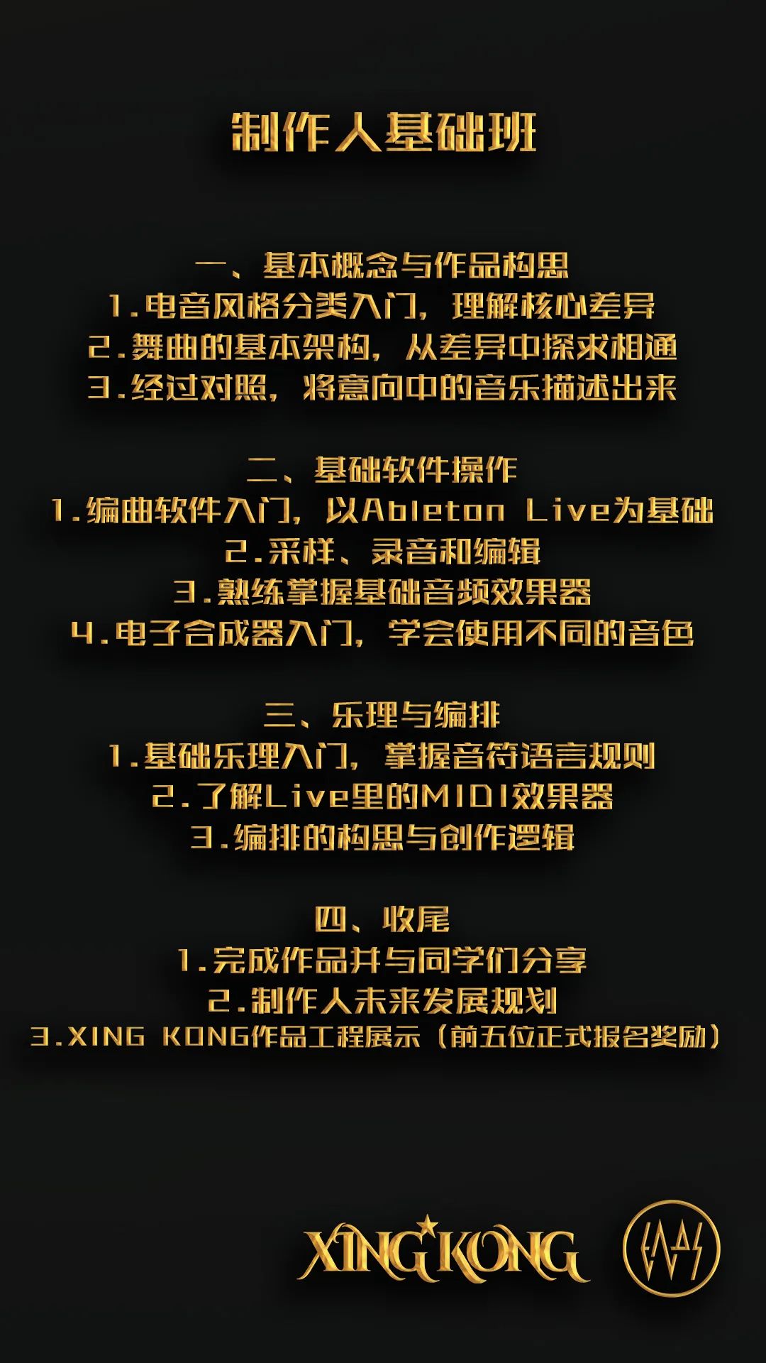 但俗话说,不安于现状才是进取之本。就在不久前,XING KONG创立了亲自授课的制作人/DJ培训室“星空军团”,重新以教学的新角度、运用包括硕士读研期间的自创方法论,纵横剖析电子音乐的制作技术与文化,同时沉淀自我、修炼内功,减少演出以全身心投入培训和教学,助电子音乐爱好者、Ravers以及夜店工作人员们蜕变或进阶为更专业的Producer/DJ。