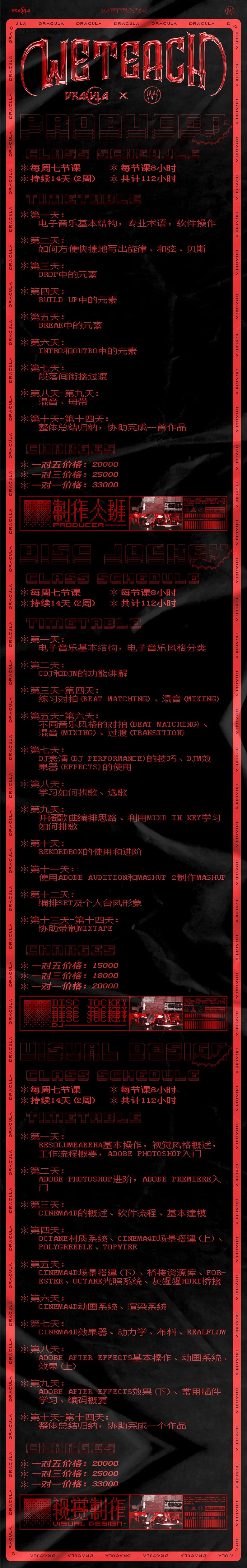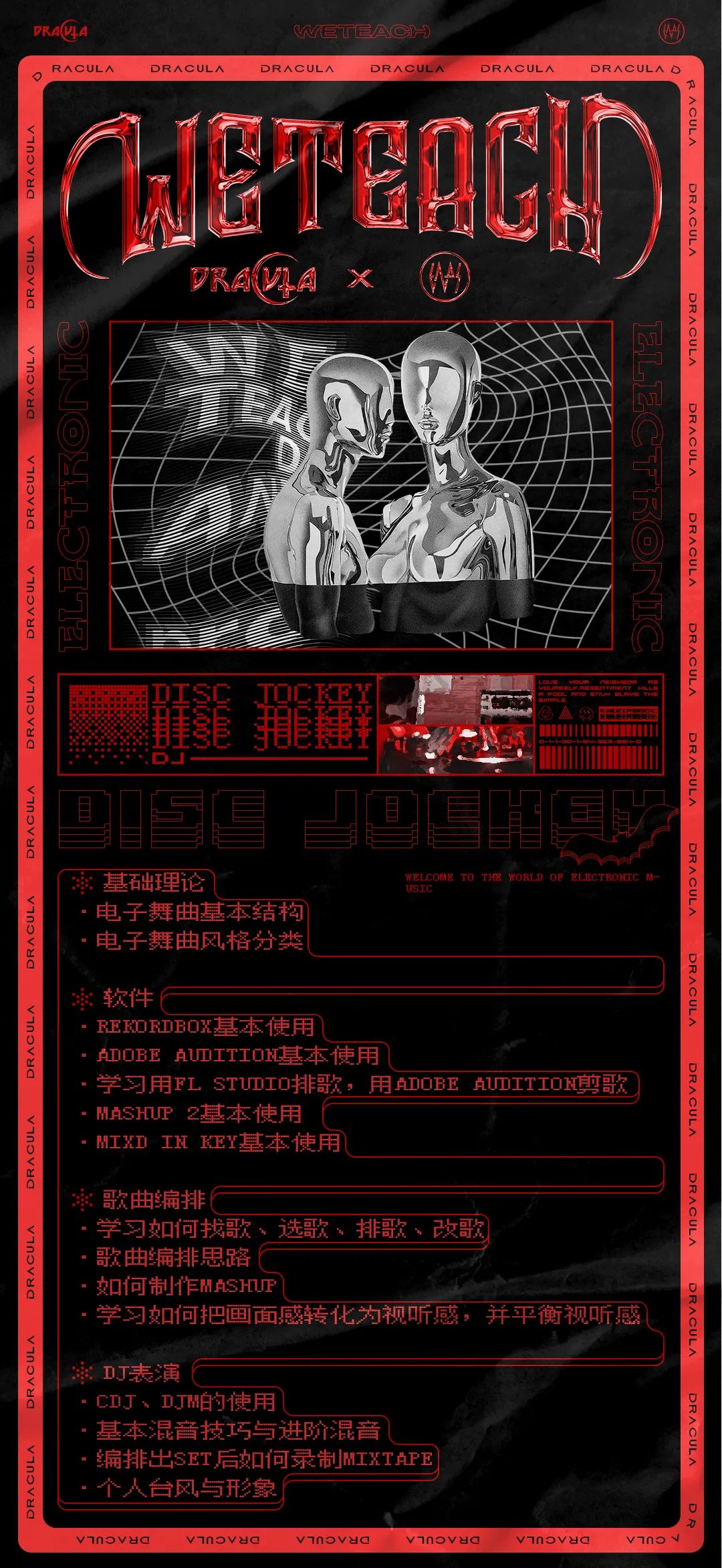 在海外潜行20年之久的Dracula今年回国后决定于国内开启他接下来的事业,其业务项目自然与他一直从事和擅长的领域有关。在创作歌曲和设计视觉作品之余,Dracula还是一名的培训资深老师,每个月从哈尔滨到三亚,他奔波着为国内多个城市的学员授课,其课程培训虽价格不菲,但往往有口皆碑。