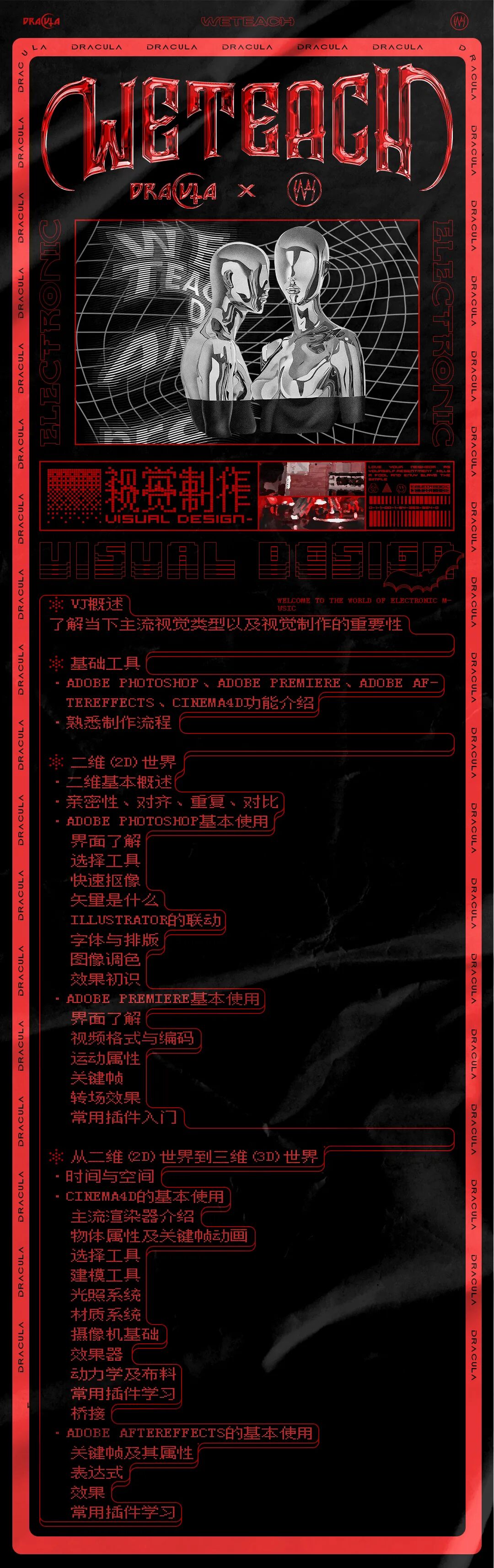 不仅课程的知识内容和教授、学习方式不同于他人,在思维逻辑、概念和想象力方面,Dracula也是匠心独运。作为涉足世界各地20余载的资深全能艺人,Dracula必然会跨出电子音乐制作人或DJ、VJ行业等领域,高瞻远瞩,通过多个角度的授课让学员学会将知识技能与其他领域联系,融会贯通、学以致用——不拘束于单个职业的格局,也不同于或不仅限于一般的培训机构的教学思维。