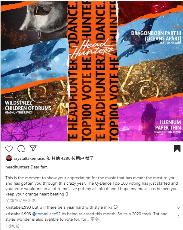 所有粉丝与听众皆可登录Q-Dance官网为自己喜爱的10首作品分别投上一票。Q-Dance将于平安夜(2020年12月24日23:59)截止投票,并于今年的最后一天(12月31日)公布投票结果得以迎接崭新的一年。在2019年D-Block & S-te-Fan和Sub Zero Project凭借他们的《Darkest Hour (The Clock)》获胜之后,Q-Dance的2020届继任者会是谁?未来Headhunterz是否会更眷顾中国的粉丝们?一切等你来定。