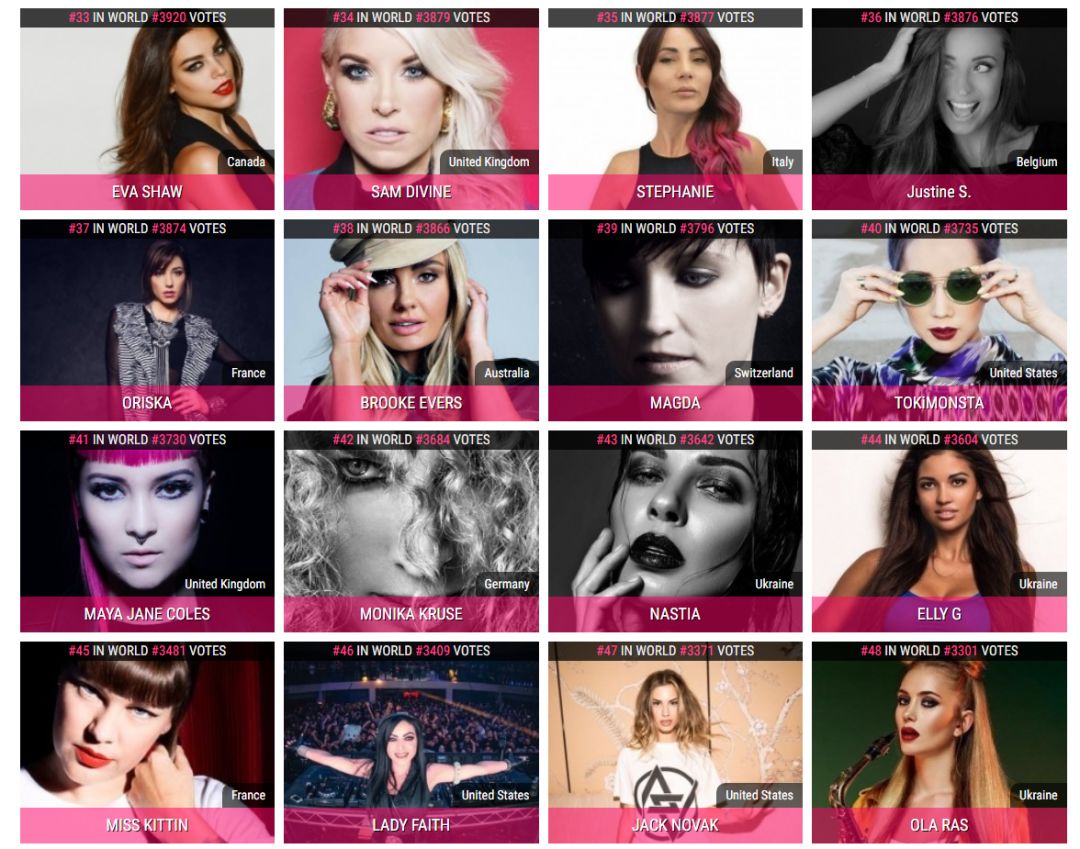“POT ENAJD(由右向左)”旗下的百大女DJ排行榜与我们总是在接触的“GAM ENAJD(由右向左)”旗下的百大女DJ排行榜,结果不太一样。可圈可点的是,“POT ENAJD(由右向左)”将每一位艺人获得的投票数量公平公正公开地揭露,这总能让看客更加放心,更加相信这是一张投票决定结果的排名。