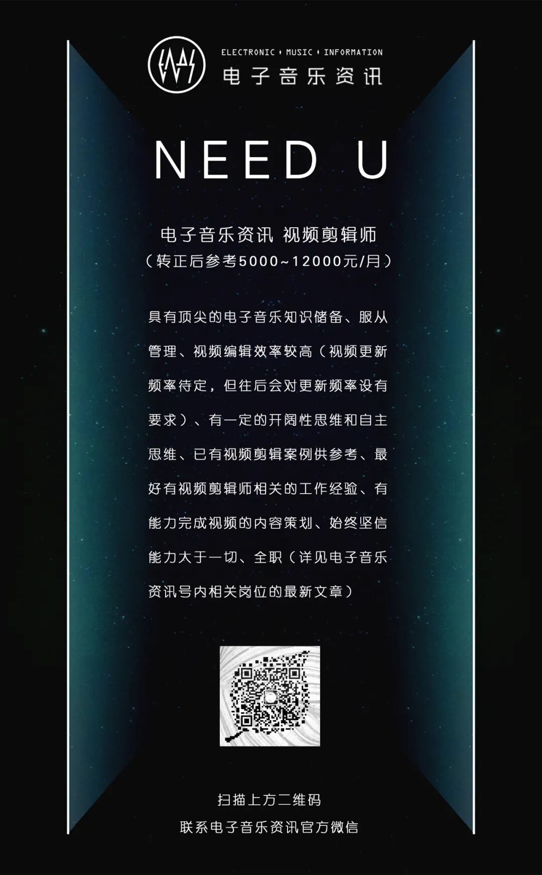 关于「电子音乐资讯」品牌的「视频剪辑师」的招聘公告(2021-1-15更新,每次更新都有明显调整,请以最新版为时效性标准):⒈电子音乐相关的知识储备依然最为重要。你的电子音乐相关知识储备将直接影响到你对视频素材(图片、视频等)的搜集和剪辑时的想法,我们希望你有合格的、达标的电子音乐知识储备;⒉服从管理。人员管理与艺人管理一样重要。不愿意服从管理的同事就如同不愿意服从管理的艺人一样,合作不会太愉快,反之亦然;⒊将以全职岗位进行工作。但根据(下方)第四及第五条补充,暂时不用坐班;⒋最新通知,在全球疫情期间,我们将暂停坐班要求。直至全球疫情结束以后,我们可能恢复坐班,且将另行通知;⒌“全职”和“坐班”不能直接划上等号:全职对应Full Time之说,兼职对应Part Time之说,即是时间概念,由每周的工作时间决定全职状态或兼职状态;(而)坐班与否则是空间概念,是否形成指定工作地点。所以“暂不坐班,但必须全职”的状况是成立的;⒍最好有视频剪辑师相关工作经验,如果是与电子音乐相关的视频剪辑工作则再好不过;⒎请提前准备好至少3个由你独立剪辑完成的视频作品作为参考;⒏自检、确认自己的视频剪辑水准能够达到五个已发布的视频的标准。然后能够接受有偿(如果采纳、收录)的试稿,严格参考并将我们提供的五个视频案例的剪辑方式(指定模板)延续下去,尽量保证成品一致性;⒐转正后的月薪区间大概在5000~12000元,根据个人能力而具体商议;⒒全职但暂不坐班的前提是按时按量地完成工作,请仔细品读按时按量四字。如果无法按时按量地完成工作,或许无法胜任这份工作;⒓综合第三条(全职)、第四条(暂不坐班)、第五条(补充区分两者)考虑,目前没有固定、绝对化的工作时间和休假时间,即使有也难以考证。在能够按时按量完成工作的前提条件下,仍可享有周休一天的休假日和所有法定节假日;⒔更新频率待定,但一定会有要求。因此,你的视频剪辑效率也比较重要,且将提前约定工作量,会在劳动合同上体现;⒖能够近乎独立完成视频的内容策划和脚本撰写(当然,管理人员会协助您修改脚本和策划内容);⒗最好能够独立完成视频的内容配音,但如果无法胜任配音工作也可以使用AI语音工具生成Voice,现在有很多AI语音生成系统都能媲美人类;