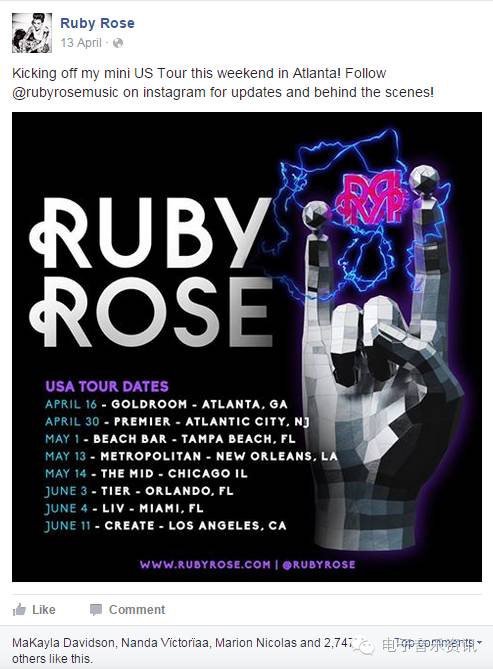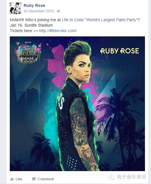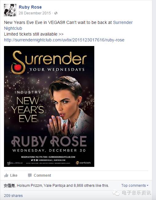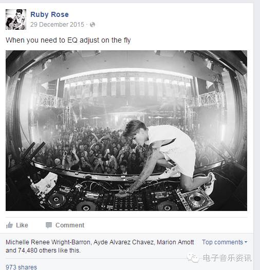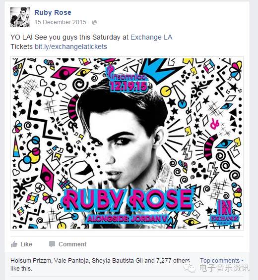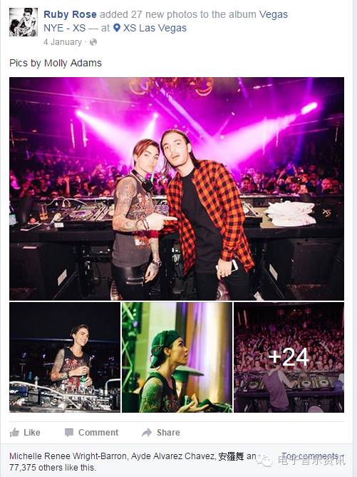 重点是音乐制作人&DJ的身份,她的大部分时间都花在这个身份上。但国人们却全然不知。是你在夜店/酒吧/音乐节看到的那种DJ,不是电台DJ(大多数国人分不清酒吧和夜店)。有证据,我们来看看她的Facebook: