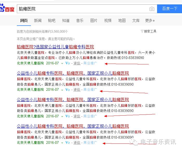 总之百度还耍小聪明把“商业推广”这四个字调成了淡蓝色,目的就是让某些人忽略。要知道阅读能力差的人特别容易忽略不显眼的字眼,可怎么样也还是无法逃离四个字毁十六年的不争事实。