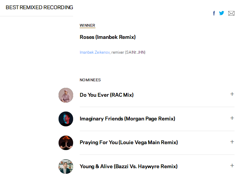 《SAINt JHN - Roses (Imanbek Remix)》(获奖)