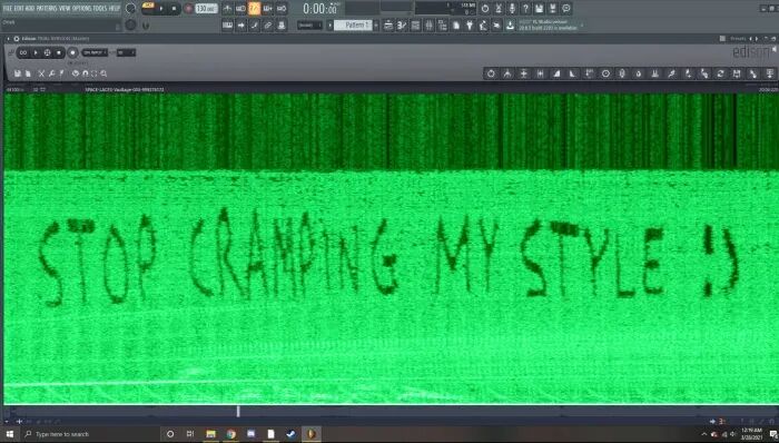⒔著名Bass Music DJ兼制作人Space Laces在上个月发行最新单曲《Vaultage 003》之后,他透露了一个令乐迷大开眼界的消息,《Space Laces》的频谱图中隐藏了他的一句话,使用频谱分析工具即可看到。笔者已经看到了,大家也快去看看吧!