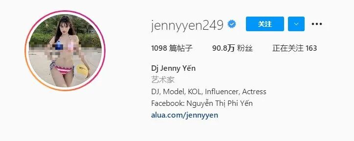 有着“越南Angelababy”之称的DJ Jenny Yến是一位95后职业DJ,早在她16岁就踏入夜店行业,近期凭借自己的面容与身材获得了全球(主要是亚洲)看客的无数流量,仅在Instagram的粉丝就已经超过90万,并以每月10万的吸粉速度急剧攀升。