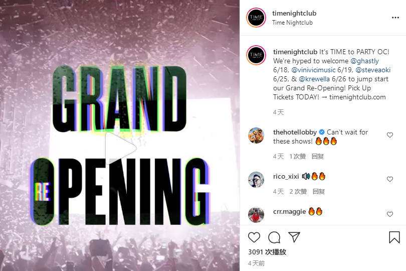 此外,还有洛杉矶的又一著名夜店Time Nightclub的开业派对日程也已被安排满满,如6月18日的GHASTLY、6月19日的Vini Vici、6月25日的Steve Aoki和6月26日的Krewella等,我们可以看到更多洛杉矶的俱乐部及嘉宾派对回归的例子,笔者在此不一一列举。