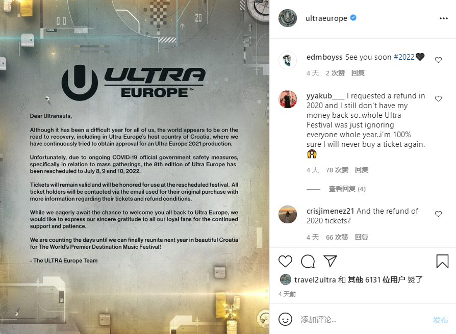 在《电子音乐资讯》前不久撰写的《Tomorrowland分站是否有望正常举办?》一文中,笔者报道了Tomorrowland及其(线下)子项目于今年几乎“全军覆没”无法举办的现实,那么,规模位居世界第二、仅次于它的UMF电音节会比Tomorrowland更好又或者是更“惨”呢?于是有了这篇撰于前几日的备用稿。