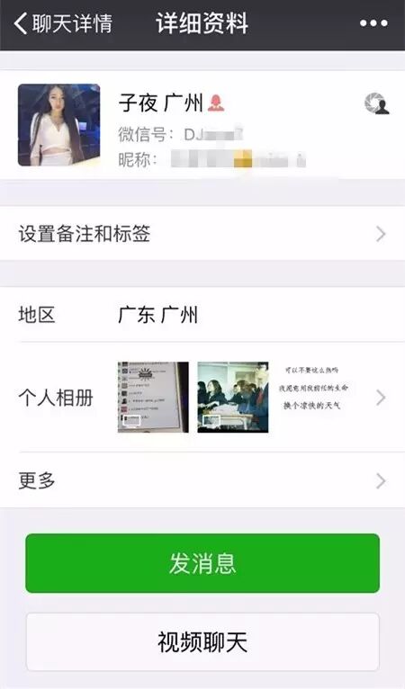 这篇文章正是因为有近在眼前的证据更想将它拿出来告诉大家。这是一个我的微信好友,一个驻场女DJ,估计已经当了好几年了。因为她的微信号就是DJ*****:
