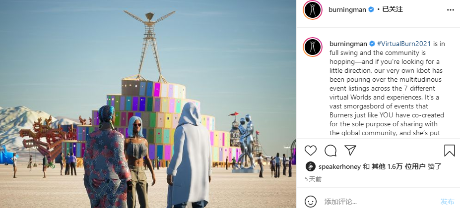 但这么一场受着各地狂热者欢迎的火人节却因为近两年的Yiqing有些“变质”了。首先,今年的火人节现实版已经取消,转变为线上的火人节虚拟版,这是继1986年火人节诞生以来的第二次取消,第一次固然也是因为2020年的Yiqing。