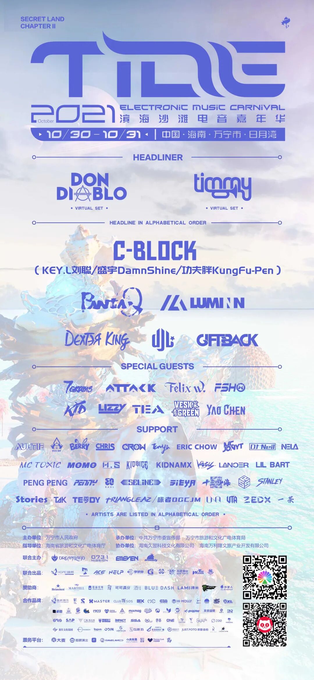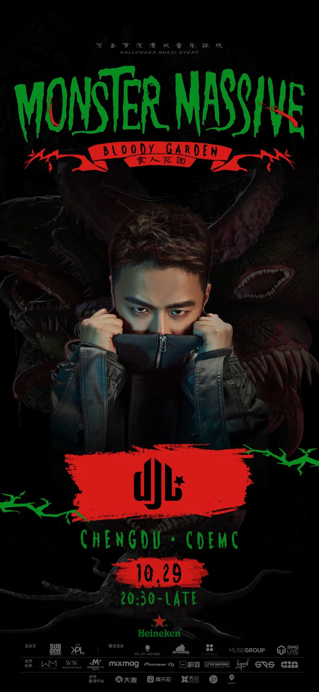 图片来自DJ L 图片版权属于原主 时至2021年,DJ Mag Top 100 DJs已经有九个“国电”品牌(七名中国籍,两组华裔,仅论2021年情况),而第一位中国籍上榜者早已“退役”跨行开烧烤店了。当然,DJ L并未放下“DJ兼制作人”的身份全职烧烤,他的主要工作依然是进行演出和制作音乐,尤其是在当前Yi Qing期间,国内需要DJ L这样的领头人来拯救萎靡不振电音市场。 图片来自Dallas Observer 图片版权属于原主 本月底的三天——10月29日、10月30日、10月31日,DJ L为国内的我们分别带来了三场电音Events演出,其中包括TIDE电音节、Monster Massive食人花园派对、Leave The World Behind派对。活动详情如下。 图片来自DJ L 图片版权属于原主 时间: 2021年10月29日 星期五 20:30~Late Night 地点:
