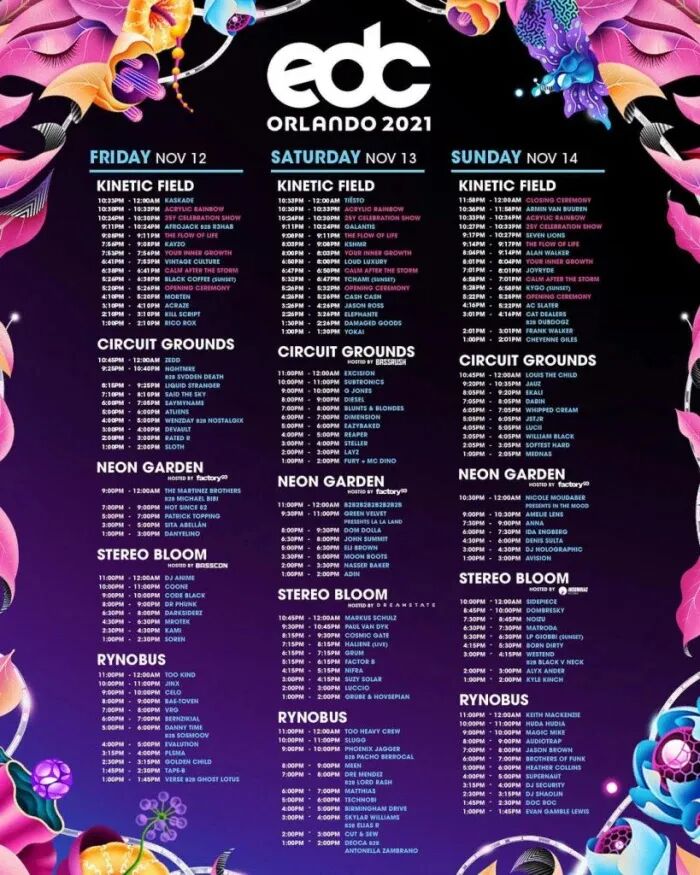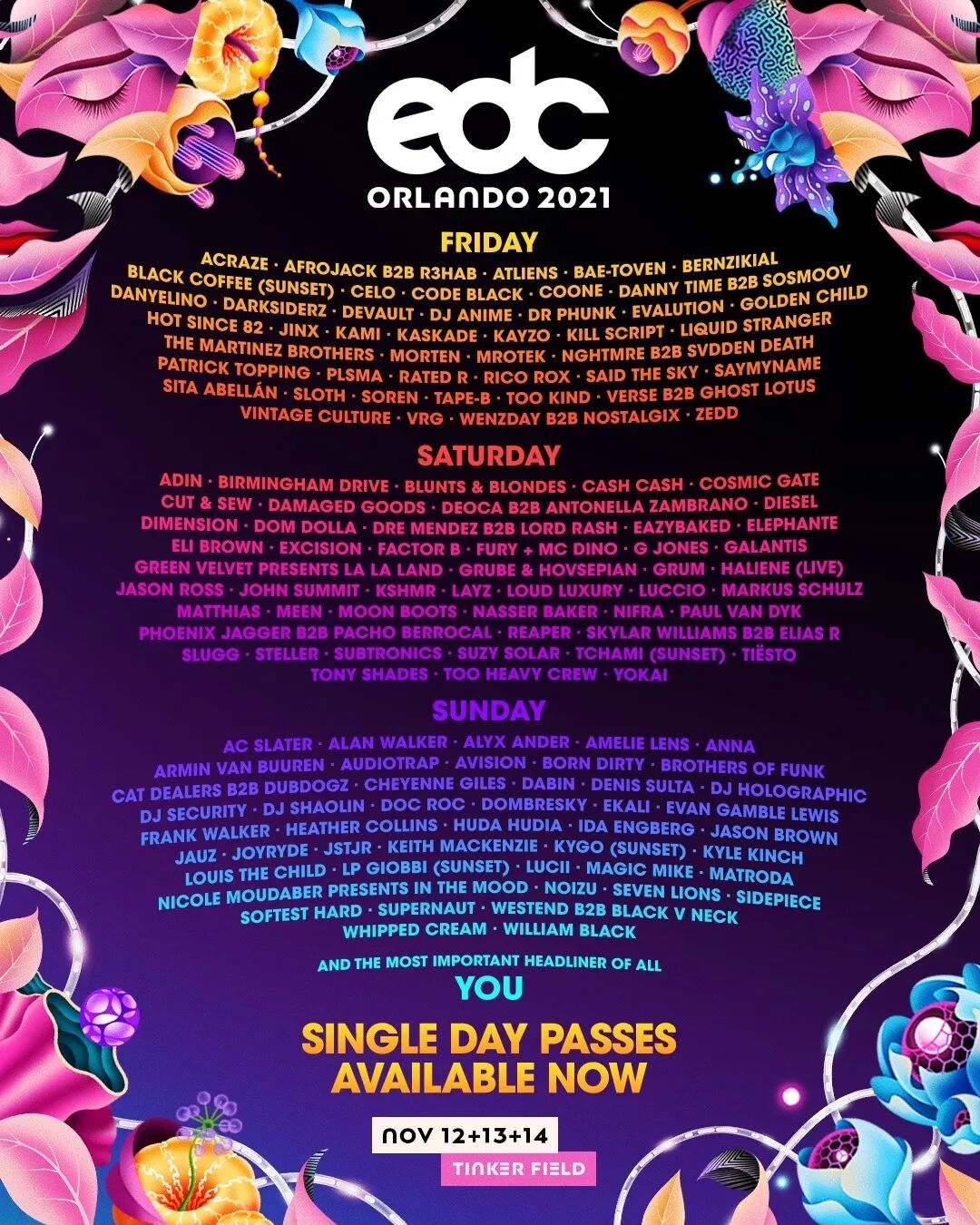 EDC Orlando 2021于今年11月12日至11月14日回归,落地于北美佛罗里达奥兰多(Orlando)的Tinker Field球场