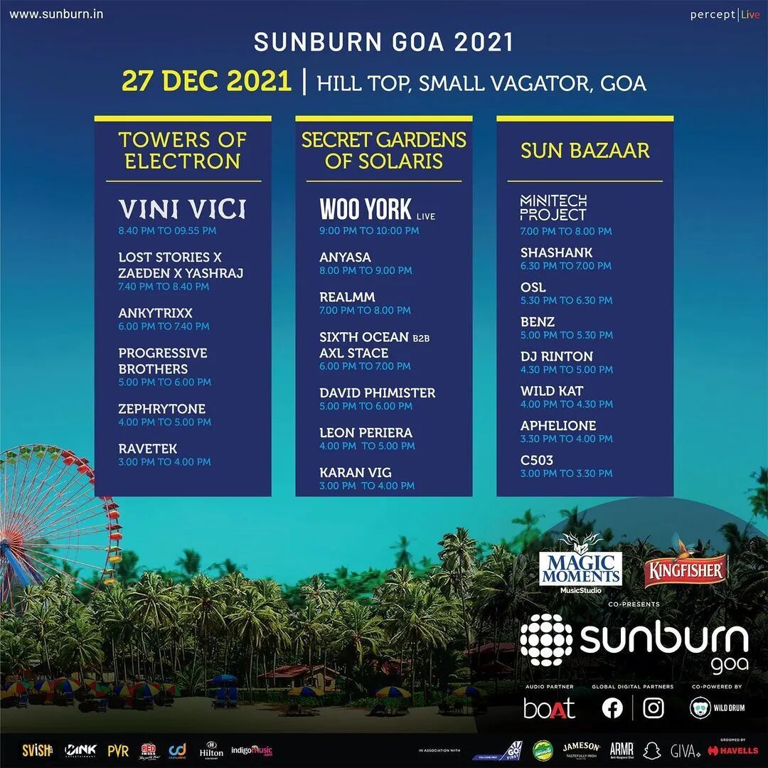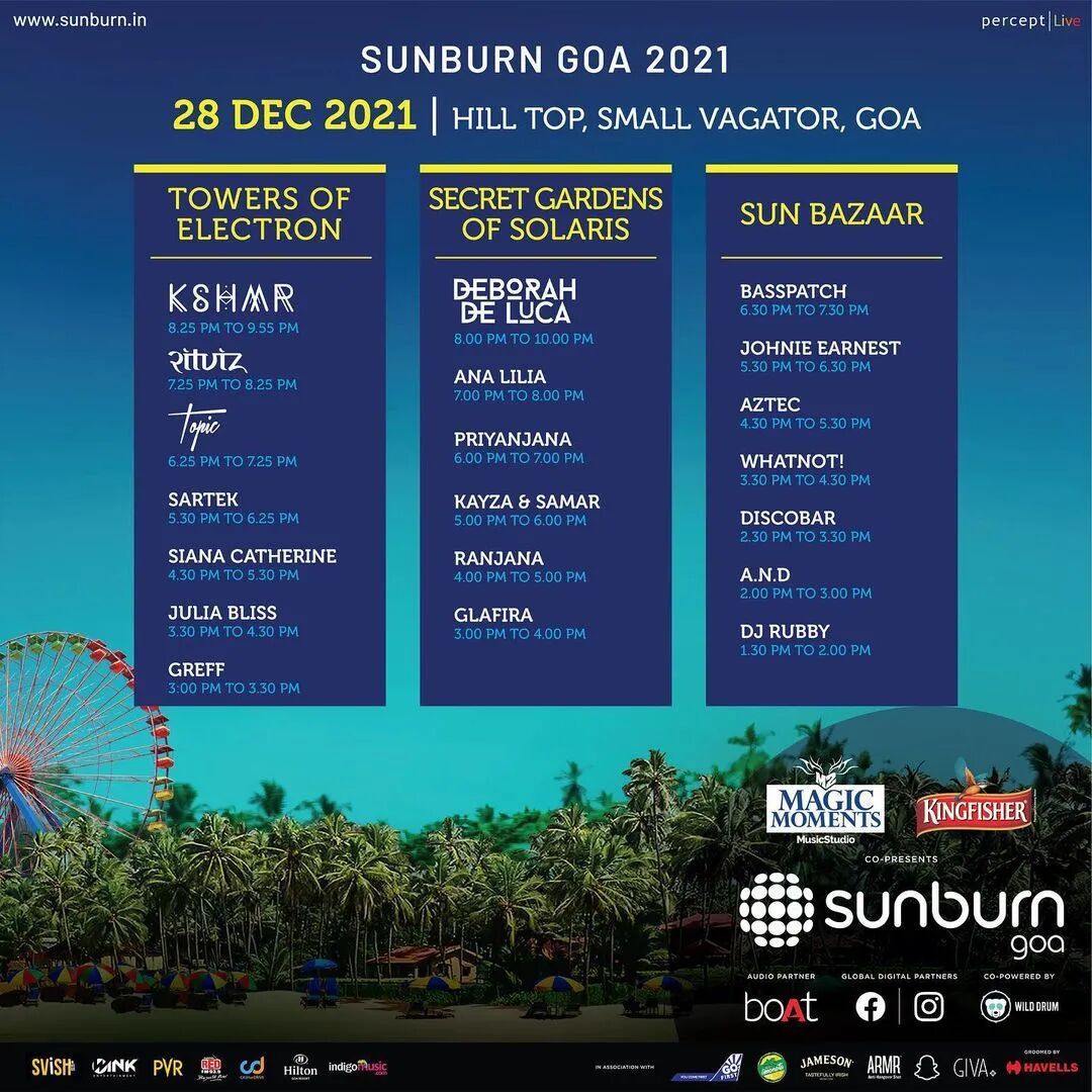 Sunburn Festival在2007年诞生于印度果阿(因此也被称为"Sunburn Goa"),第一年举办就是一场为期三天的音乐节,发展十分迅猛,早在2009年就被美国新闻媒体CNN评为“全球十大音乐节之一”(也奠定了该音乐节在亚洲电子音乐节中的领先地位),甚至在2014年被IMS亚太地区商业报报道为仅次于Tomorrowland和Ultra Music Festival的世界第三大“舞曲节”。