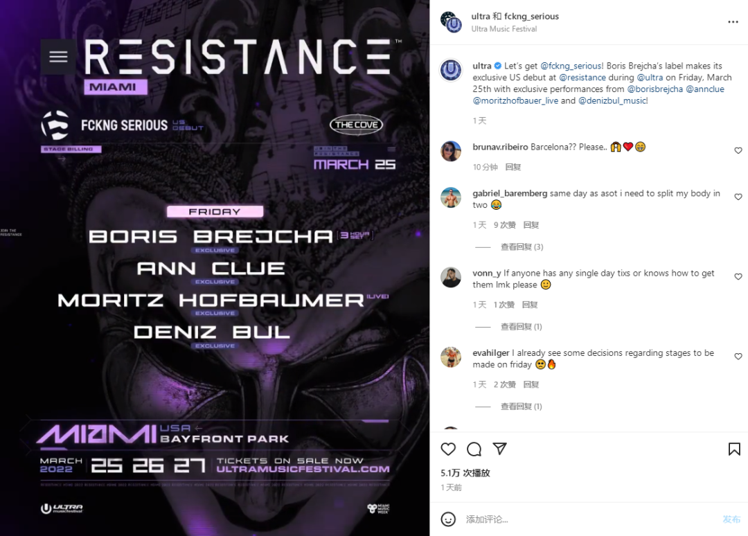 图片来自Ultra Music Festival Instagram截图 版权属于原主