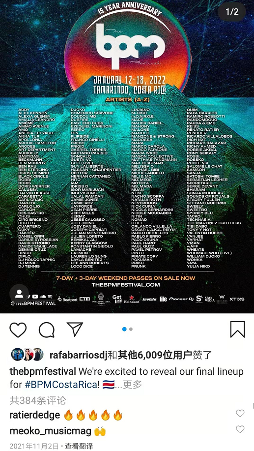 然而,在今年1月10日,也就是The BPM Festival Costa Rica(哥斯达黎加站)准备开幕的前两天,哥斯达黎加突然出台Zheng策——禁止1月11日至23日举办聚集性活动(看这日期仿佛像是针对The BPM Festival出台的),于是主办方宣布,万人期待的电音节就此取消。