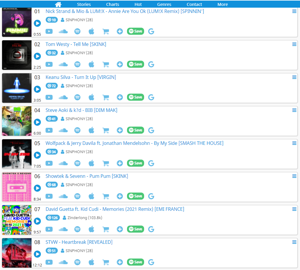 (仅前三集中)唯一的例外是《1001Tracklists A State Of Dance Music 2021》中的“Top 10厂牌”数据,在进入本文也就是《第四集》时,我们庆幸且幸运地预告大家,将至的“Top 10播放列表”数据也算“接地气”、起码不至于让大家感到陌生和感到巨大的文化隔阂。