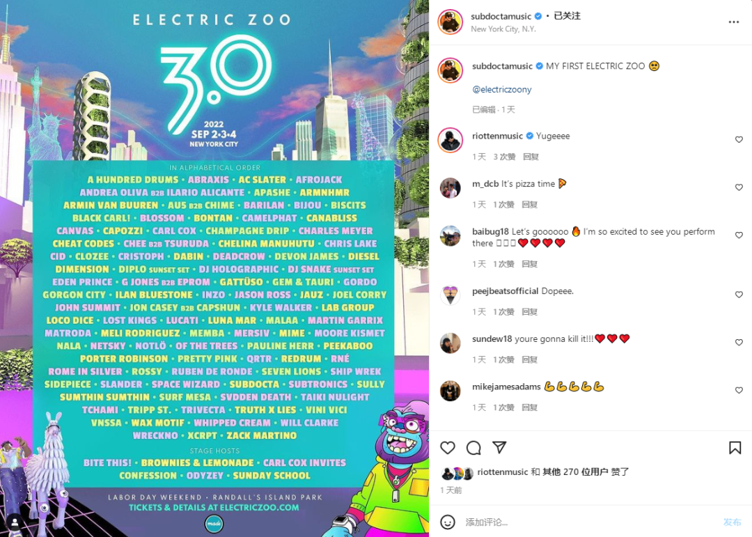 最近,SubDocta不仅为他的首张LP/Studio专辑开放了演出预订,并且他也首次出现在十万人数级别的大型电音节Electric Zoo的阵容上。接下来的日子,让我们期待Subdocta的精彩表现、能够从Bass Music社群脱颖而出。