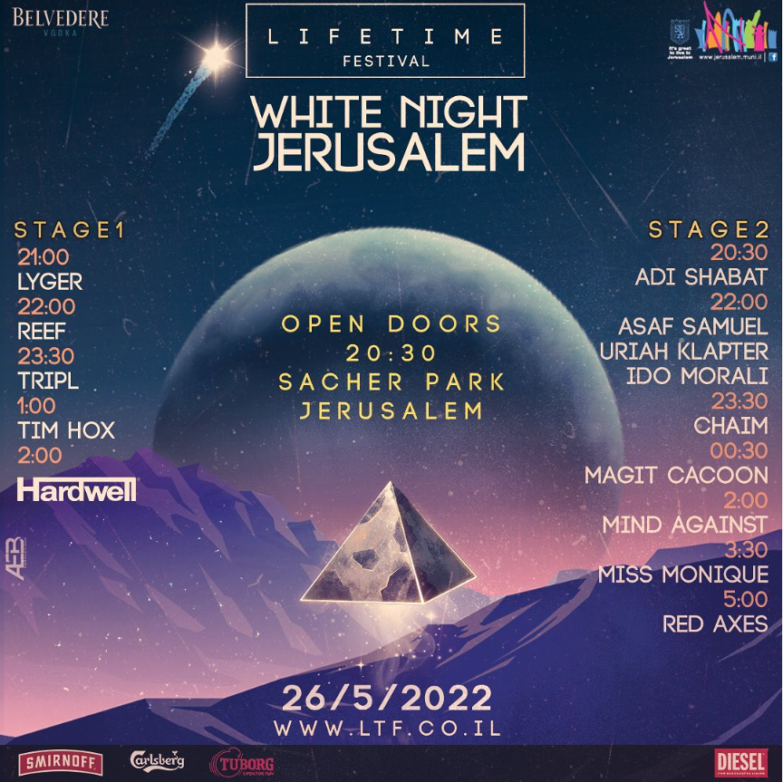 图片来自「DarkGlow 暗芒」超链接截图图片版权属于原主在回归之后的巡演档期里,我们能够发现不少亚洲的身影,其中就包含一个经常被忽略的国家——以色列。作为犹太人在当代世界的Zui主要根据地之一,以色列常用的希伯来语对我们而言更加抽象。但,从地理角度来说,以色列位于亚欧大陆交汇处、属于亚洲。但…因为文化背景肤色历史等原因,以色列人既很少被归入亚洲人,也不常被归为欧洲人。但毋庸置疑的是,Lifetime Festival是以色列于近一个月以来最大的电音新闻焦点,主要是因为Hardwell在Lifetime Festival的演出有太多亮点、卖点了。首先需要值得一提的是,在过去的几年内,Lifetime Festival经常将自己分类为“Techno Festival”。图片来自Lifetime Festival 图片版权属于原主若是回顾Lifetime Festival及其子品牌、子派对的阵容,也的确是以Techno为主的,但少有非常的“Techno All-Star”视觉感(甚至会有Trance、EDM还有House、Hip-Hop)。Lifetime Festival总是会在以色列的多座城市落地,比如埃拉特(Eilat)就是它的起点。作为以色列最南端的城市,也以其类似中国厦门、三亚的海岛、海城地位和氛围征服游客。2022年5月底,Lifetime Festival呈现了最具焦点的一次活动,Lifetime Festival White Night Jerusalem于以色列的首都耶路撒冷(Jerusalem)落地,而即使Lifetime Festival本就有上述N多引人注目的关键词,其最大的关键词,却依然是海报上的“那个男人”。图片来自Lifetime Festival 图片版权属于原主如你所见,Hardwell不仅是这次阵容中唯一一个千万粉丝级别的巨星DJ/制作人,也本应该是风格最“格格不入”的名字,但更重要的是,Hardwell是本次Lifetime Festival耶路撒冷(Jerusalem)站的阵容里唯一一个以Logo形式体现名称者(其它艺人都只是打字)。