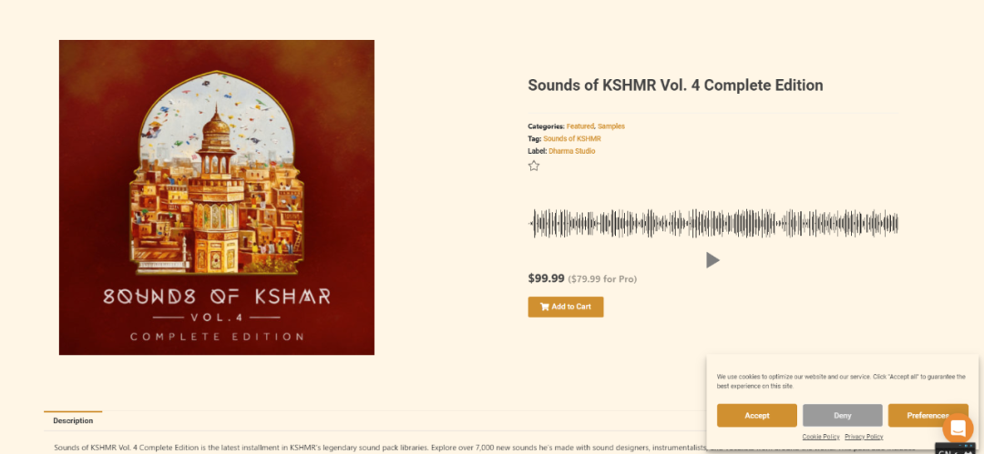Sounds Of KSHMR Vol. 4由Dharma Records的素材制作、发行商Dharma Studio扮演“素材包厂牌”。根据素材包介绍,这个素材记录了来自KSHMR与各国声音设计师、素材(包)设计师、乐手及Vocalists合作录制的750种音色,尤其包含了从Disco、Pop、Hip-Hop、Dance再到印度传统乐的旋律和鼓组(实际上远不只这些)。