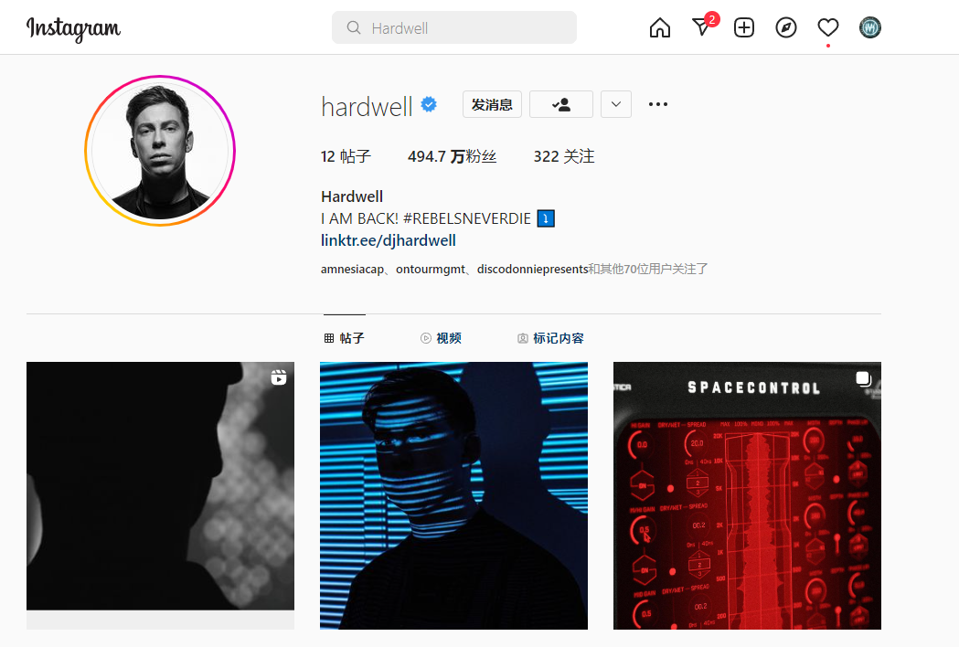《I AM BACK! #REBELSNEVERDIE》,这不是一句音乐口号,而是现在Hardwell的Instagram(等社交媒体)的介绍信息(类似于国内的个性签名)。