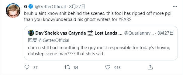 Getter在后续除了抨击抄袭外还大量“追锤”Excision雇佣了很多Ghost Producer、枪手词曲作家等问题,在事情发酵中同意者并没有反对者来得多。