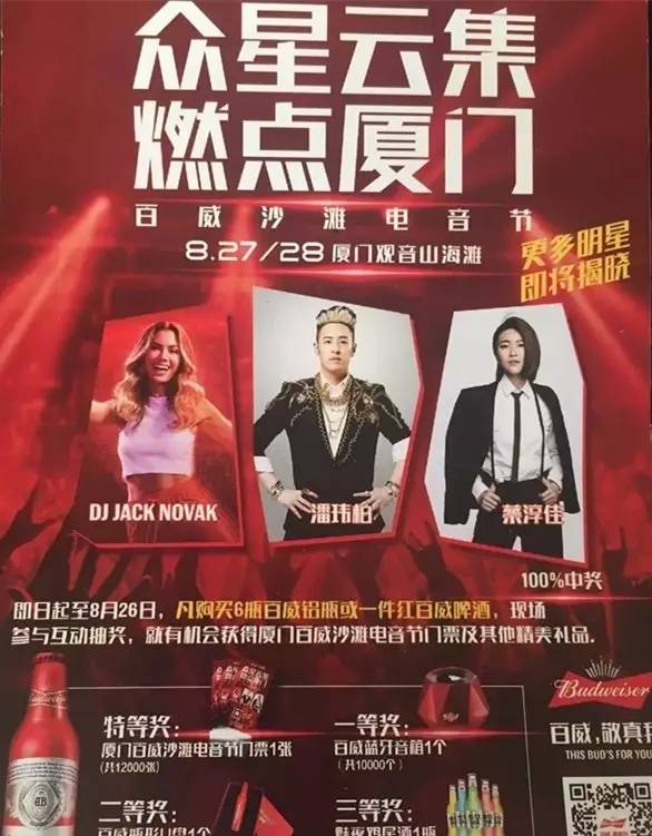反正说白了这个音乐节本身是没有错的,这里也没有责怪百威。但这家KTV挂羊头卖狗肉的行为实在可耻。如果你看到了他们的这个推广,那你应该知道是哪家KTV。他们甚至在门店上也将这个本来其实是“百威沙滩电音节”的事实故意扭曲为“百威风暴电音节”。为了赚钱啥都做得出来。只希望厦门的朋友也千万不要被骗了。