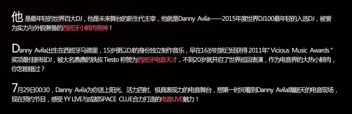 栏目初期,YY LIVE与成都最知名的夜店Space携手在这个平台打造“百大DJ现场”专栏,这将带给你对YY LIVE新认知。这是一个YY LIVE的进步,更是一个电音现场的进步。目的为邀请世界各地的百大DJ到Space进行演出,并且由YY LIVE官方进行直播,带给你最真实的现场感,你可以从最好的角度/画质/音质体验亲临现场的感受。接着说说我们应该怎么通过YY LIVE观看百大DJ的直播。