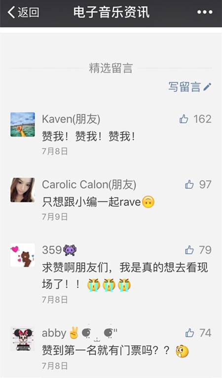 请这四位获奖者将自己的收货信息发送至本公众号,包含地址/姓名/电话,我们会很快通过顺丰寄给你。还有你之前朋友圈的截图(全球三大电音节力邀艺人,我请你去看他的现场。)。