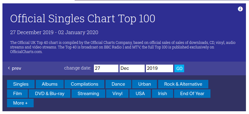 还有一个小插曲,UK Singles Chart有些时候也会被叫作“Official Singles Chart”,相当于直接把UK换成了“Official”。这一方面不会太影响大家的阅读理解。