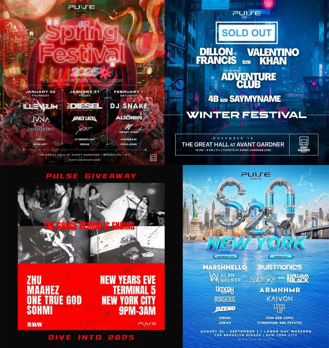 EDC Korea独家呈现活动主办方1Pulse Events是一个由华人组建的美国团队:1Pulse Events的全职员工和艺术家后勤绝大部分都是中国人。建立起,1Pulse Events便在美国名声大噪,大部分室内竞技场活动及音乐场馆派对均能实现数千乃至数万张门票售罄,成为美国极其惊人的华人电音势力。1Pulse Events甚至将中国的春节、情人节、网络情人节、冬至节(冬至/冬节)等节日做成了美国满载热浪,引进了不止一个世界级IP。