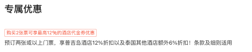 考虑到我们Raver去泰国EDC的,只有很小一部分是生活在泰国本土或举办城市本地的华人,大部分还是专程从中国的各个城市至普吉岛出游,作者还发现在购票平台内,存在普吉岛酒店12%立减折扣(8.8折)、泰国其它酒店6%立减折扣的专享福利,还没定酒店的“旅游Raver们”可以看看。