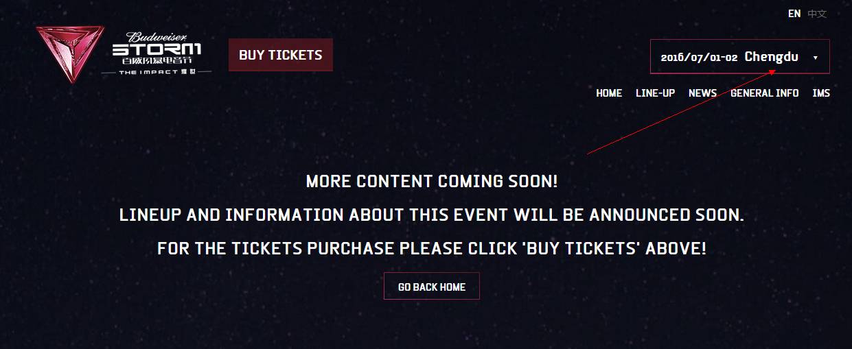 然后这样可能会帮风暴多吸几千人的Swag Boy就这么被无视了,我就是觉得特别心疼。而且还有一件事儿你说不定会更关心。现在所有站点已经停止北京站的售票,包括官方也直接把阵容给下线了,而且连进都进不去,按北京站会自动跳转到成都站: