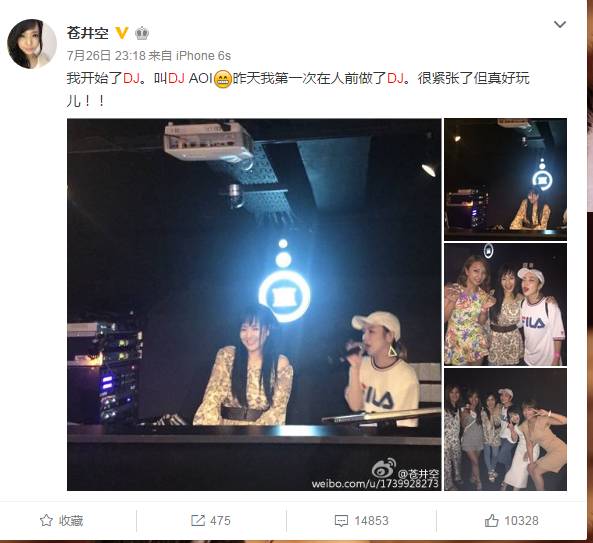 不知道大家是否已经知道知名爱情动作片演员&处女代言人苍井空也已经转型当DJ了这件事,听说还演出了。