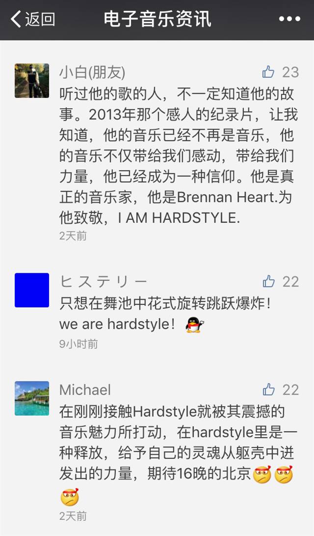 截止到今天18:00,恭喜五位硬汉获奖。尽管不是每位电音爱好者都喜欢Hardstyle,但作为Hard Dance大家庭中发展最顺利的一员,我们最起码要做到接受和明白它是什么。不管你认不认识Brennan Heart,这场盛宴需要收拾好你的拳头当武器。下面截图当中的五位粉丝,尽快将你们的姓名/电话发到我们公众号后台,并说明上海站还是北京站,到时候直接通过该信息即可入场。