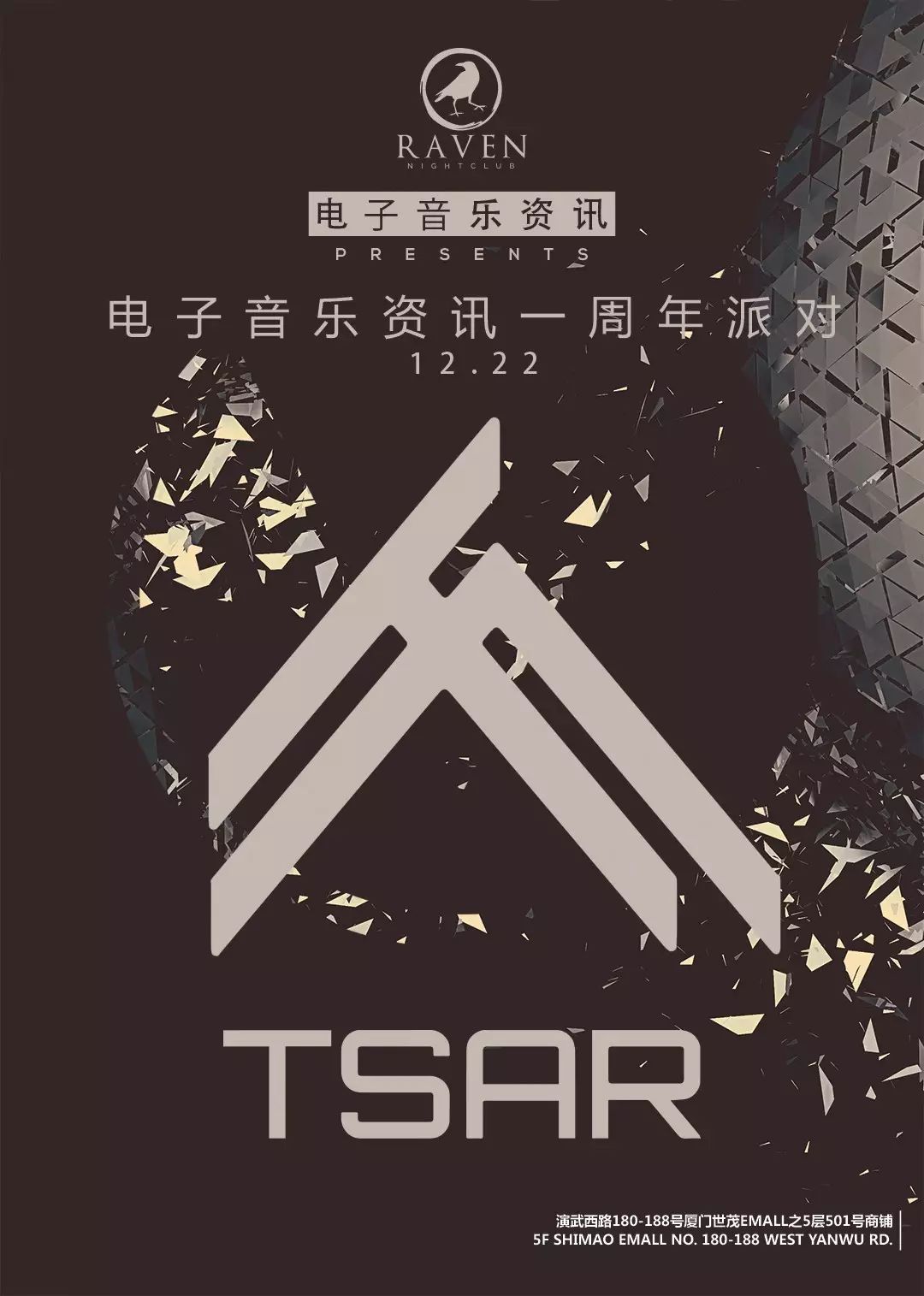 TSAR也是中国知名厂牌FAD旗下一员,更是厂牌老板极其看中的主推对象(不出意外的话 这是全世界平均年龄最小的厂牌)。TSAR甚至是Panta.Q的《战马》官方Remix专辑指定的艺人之一,以Panta.Q的话说,这张Remix专辑都是他亲自挑选的中国最牛逼的制作人来完成的,比平时更多混响的Trapstep风格让这首Remix别具一格。说起能力方面,TSAR在电音界是得到广泛认可的,他的人气正随着实力不断攀升,逐渐知名。