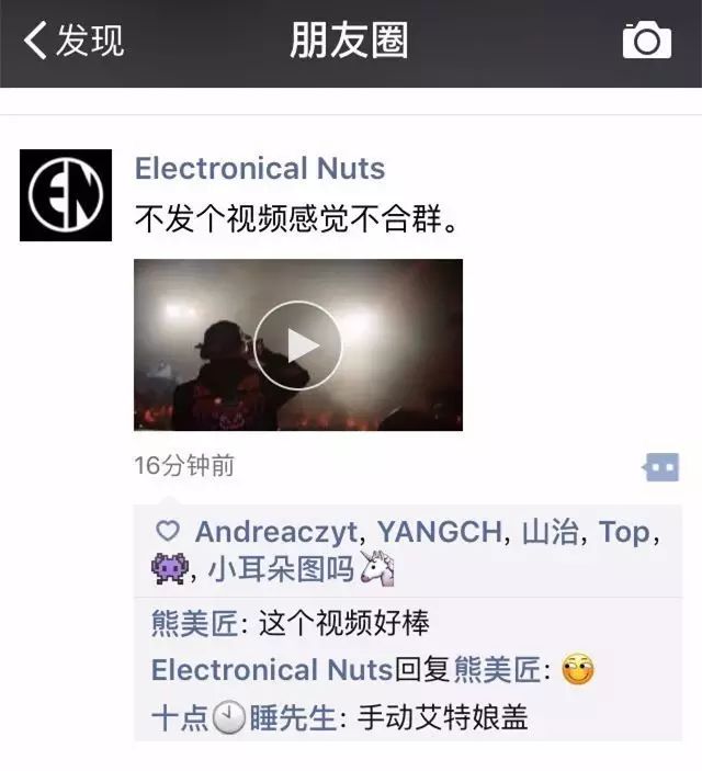 有了这个功能,自己第一时间当然就是想到发一些Rave现场视频。尽管朋友圈已经刷屏一整天,我发的视频仍然是整个朋友圈里最酷的。如果你经常看我们的文章,那你估计早就知道他们是谁。