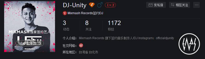 4月3日,我们公众号全球首发了一条重大消息,在此之后Mixmash官方接着全球同步宣布。没错,Unity已经签约Mixmash,之所以告诉你前三位签约国际知名厂牌的中国音乐制作人&DJ也是为了让你更好地认识为什么说Unity是第四位,一共哪四位。在成为音乐制作人之前其实Unity已经是一位在微博上粉丝数万的DJ,接下来他发行的音乐风格将更加丰富,现场放的音乐风格也会更多地涉及Trap/Hard Trap/Bass House等等。