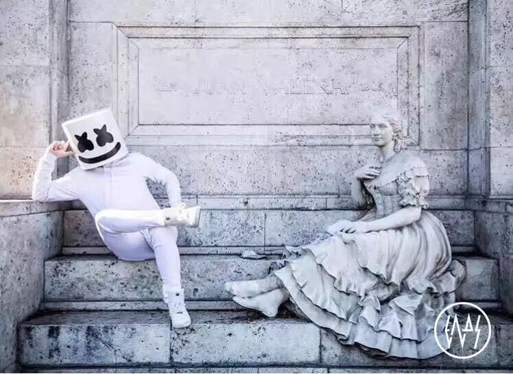 头套只是一个标志性物品,但Marshmello绝对不是只有头套这一个部分。如果你是Marshmello的粉丝,那你一定知道他的装扮除了头套以外还有全身白这一特点,而许多夜店冒充Marshmello是完全无脑的,他们只是跟上了时代不再像以前那样靠盗歌吸引人气,而是换成了另外一种偷窃行为罢了。我们观察过很多冒充Marshmello的驻场DJ,但只有极少数会遵循全身白的装扮。