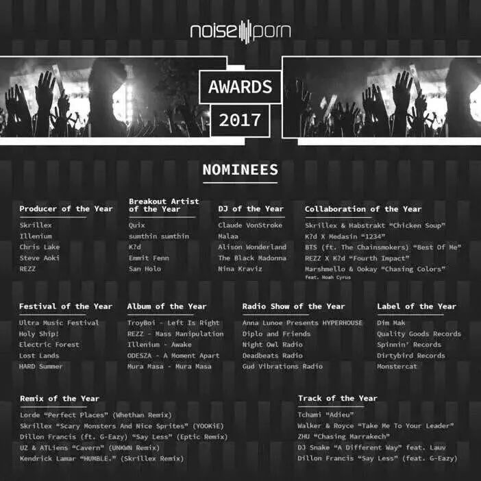 而就在近期,投票截止,各项年度冠军也在近几日陆续公布。截止到昨夜,NoisePorn官方刚刚公布了所有的十项投票结果,结果如下。