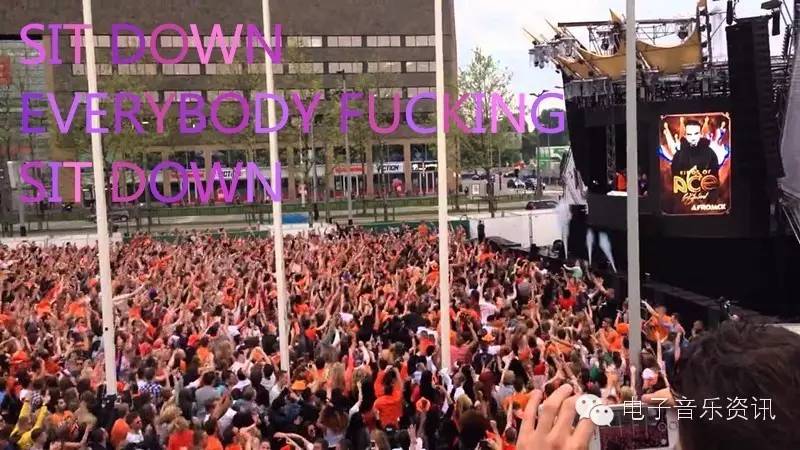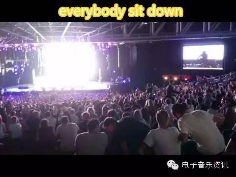 说明:虽然是让你坐下,但是一般大家都会是蹲下。sit down的目的是让大家蹲下,然后再一起jump起来。2015风暴的时候DVBBS和skrillex都用到了这样的MCing,但是没什么人理他们。如果你真的坐下了,那你可能会摔一跤。将在第九招中同时引用到视频内。